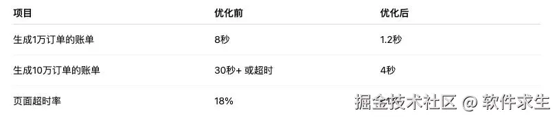 其实这事已经不是第一次了。结算账单的生成一直是我们系统里“知名”的性能瓶颈。最早上线那会儿业务量还不大,几千条订单一跑,也能撑得住。