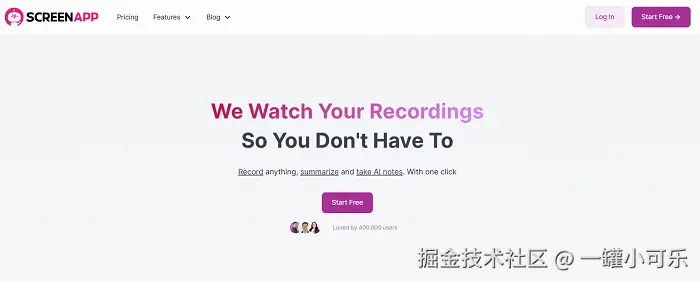 ScreenApp集成了AI驱动的屏幕、音频和视频录制功能,操作步骤如下: