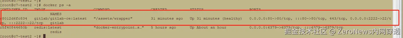 查看创建好GitLab容器,确保GitLab容器已成功运行,然后继续下一步。