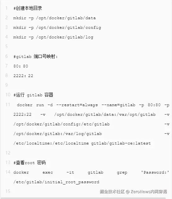 在开始部署GitLab容器之前,您需要创建本地目录来存储GitLab数据、配置和日志: