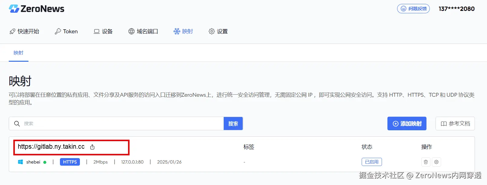 gitlab映射添加完成后,可在应用详情中可查看添加好的映射列表。