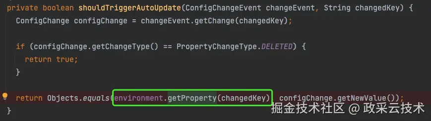 //比较environment中获取到的属性值与apollo中配置的新值