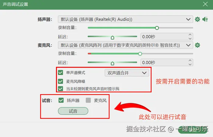 要是你想让录制声音效果更好,还能点击 “声音调试设置” ,开启 “麦克风降噪” 等功能,减少外界杂音干扰,让录制的声音更清晰。完成这些设置后,点击界面上的 “开始录制” 按钮,就正式开始录制屏幕和声音了。