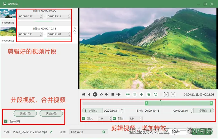 3、自带编辑功能: 录制完成后,不用再去找其他复杂的视频编辑软件,在数据蛙录屏软件里就能对录制的视频进行简单剪辑。比如裁剪视频多余部分、给视频添加特效、合并多个视频等操作都能实现。