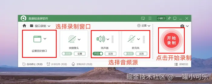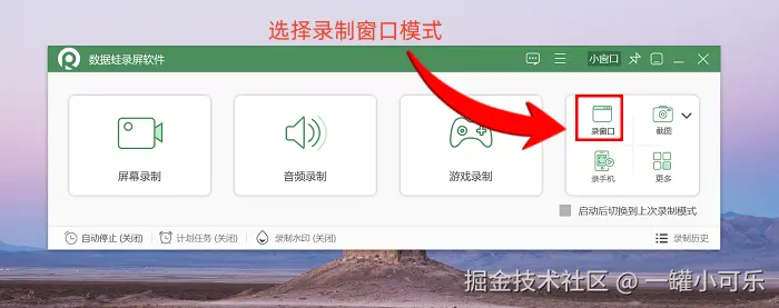 步骤1:下载安装好数据 蛙录屏软件后,在电脑上找到并打开它。进入主界面,这里有多种录制模式图标。我们以 “窗口录制” 为例来给大家讲解。