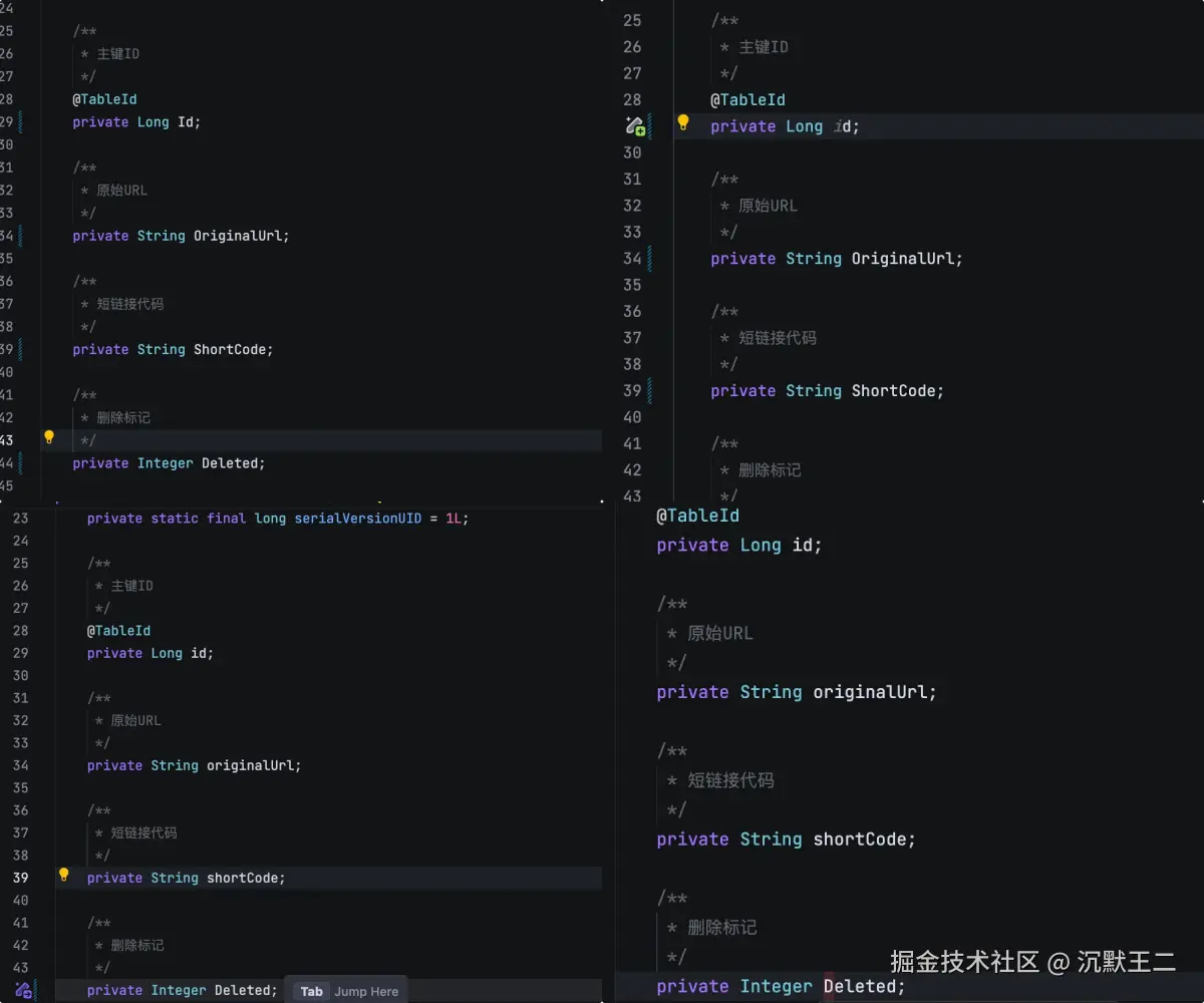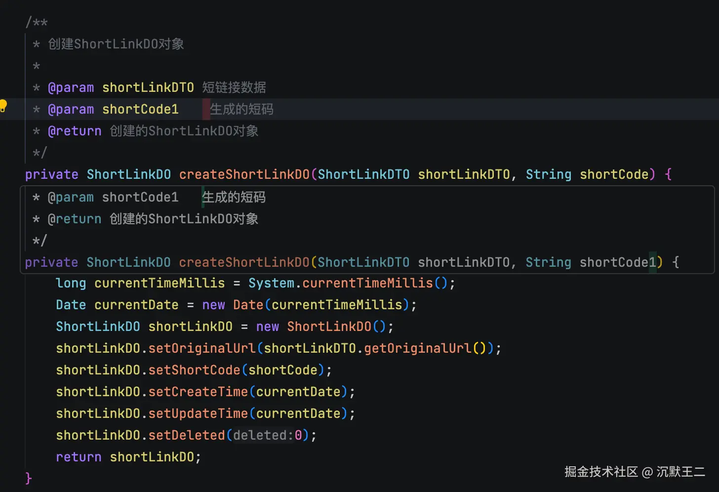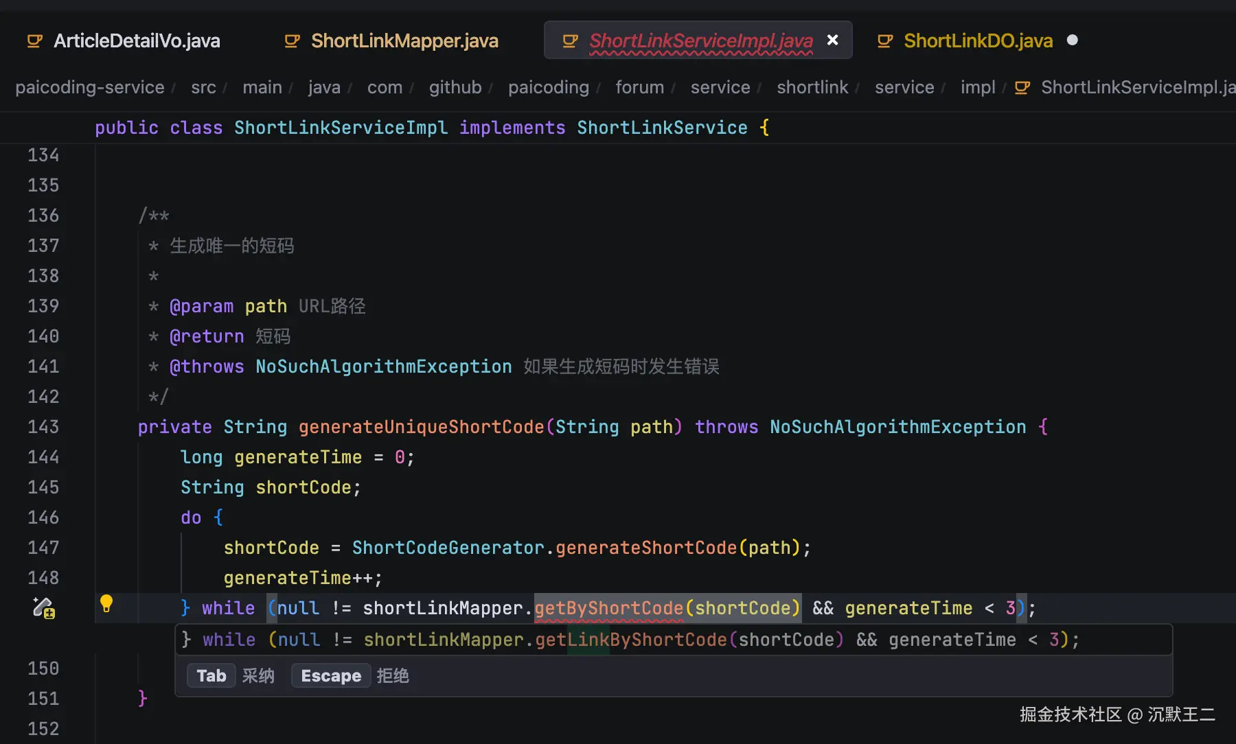 按下 TAB 接受修改后,会再跳转到 shortLinkDO.setShortCode() 这里让我们也进行修改。