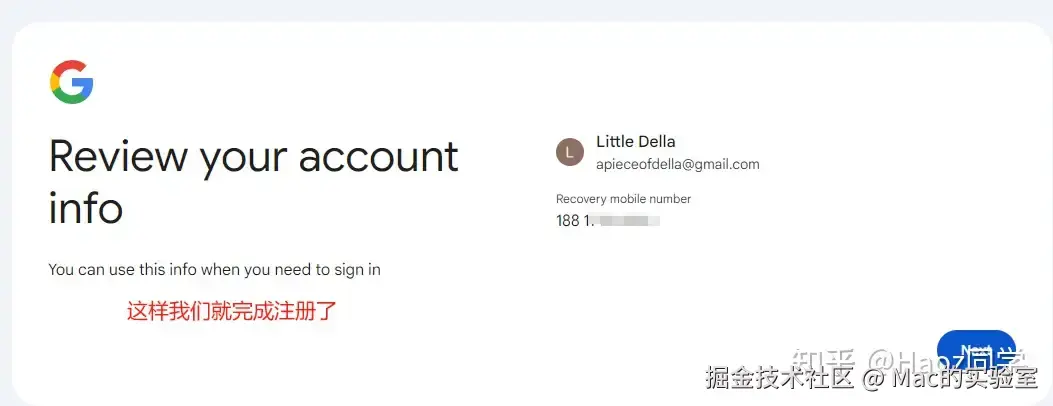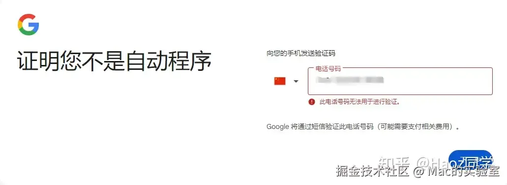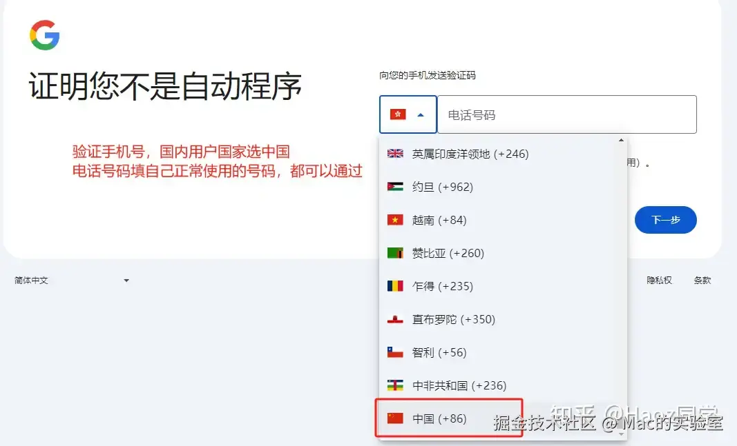 如果还是卡在手机号注册,可以把+86 变为+860 试试,觉得麻烦不想折腾的同学也可以在公众号:Mac的实验室 后台回复 谷歌 几分钟就搞定了。