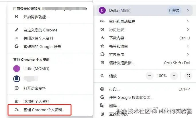 谷歌浏览器是可以管理多个账号的,点击页面右上角的“管理 Chrome 个人资料”,登录你的其余账号。