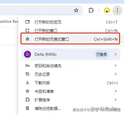 步骤二 :打开浏览器的“无痕浏览”模式