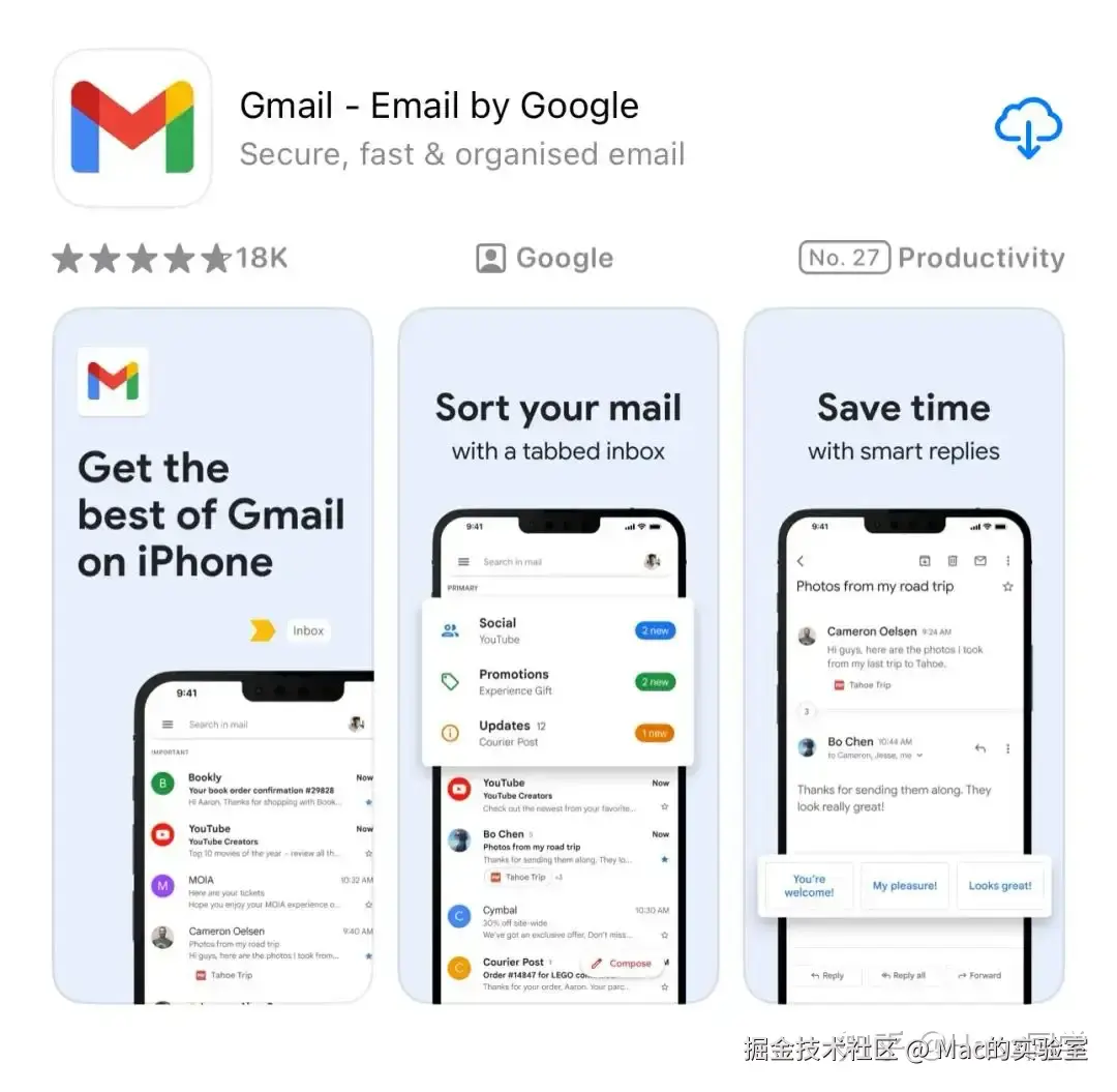 步骤一:在 Appstore 下载Gmail,安卓用户在谷歌商店或直接搜索 Gmail apk 下载