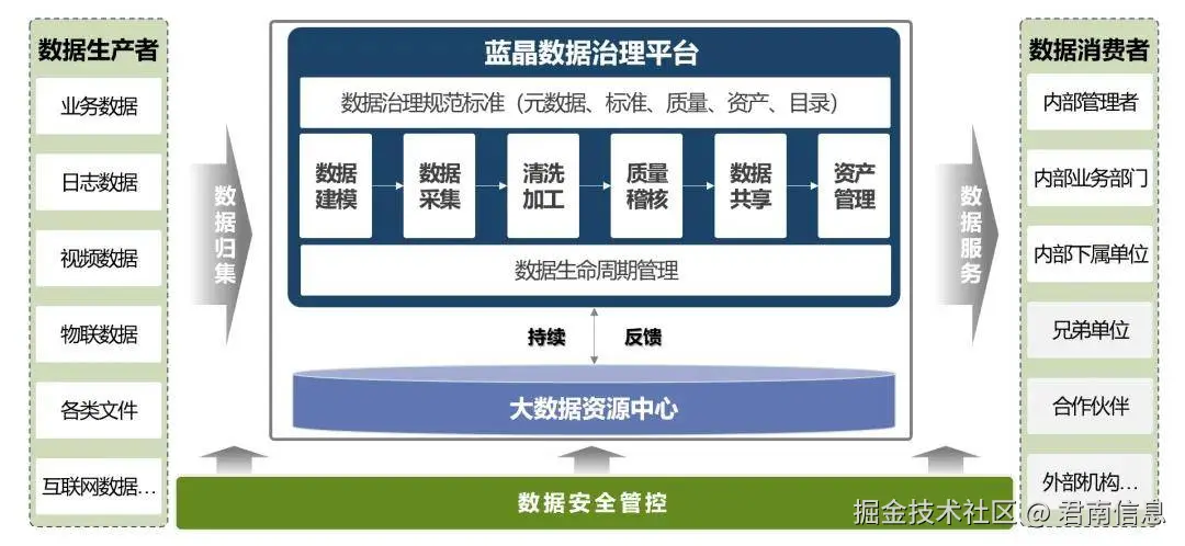 蓝晶数据治理平台,覆盖数据全生命周期的监控与治理,确保数据的完整性、准确性、一致性与时效性。通过构建标签体系、元数据管理、数据标准与质量管理等模块,实现数据的统一管理与智能服务。 此外,数据中台还提供了数据开发、数据资产、数据服务等一站式解决方案,助力水利行业实现数据驱动的业务创新与决策优化。