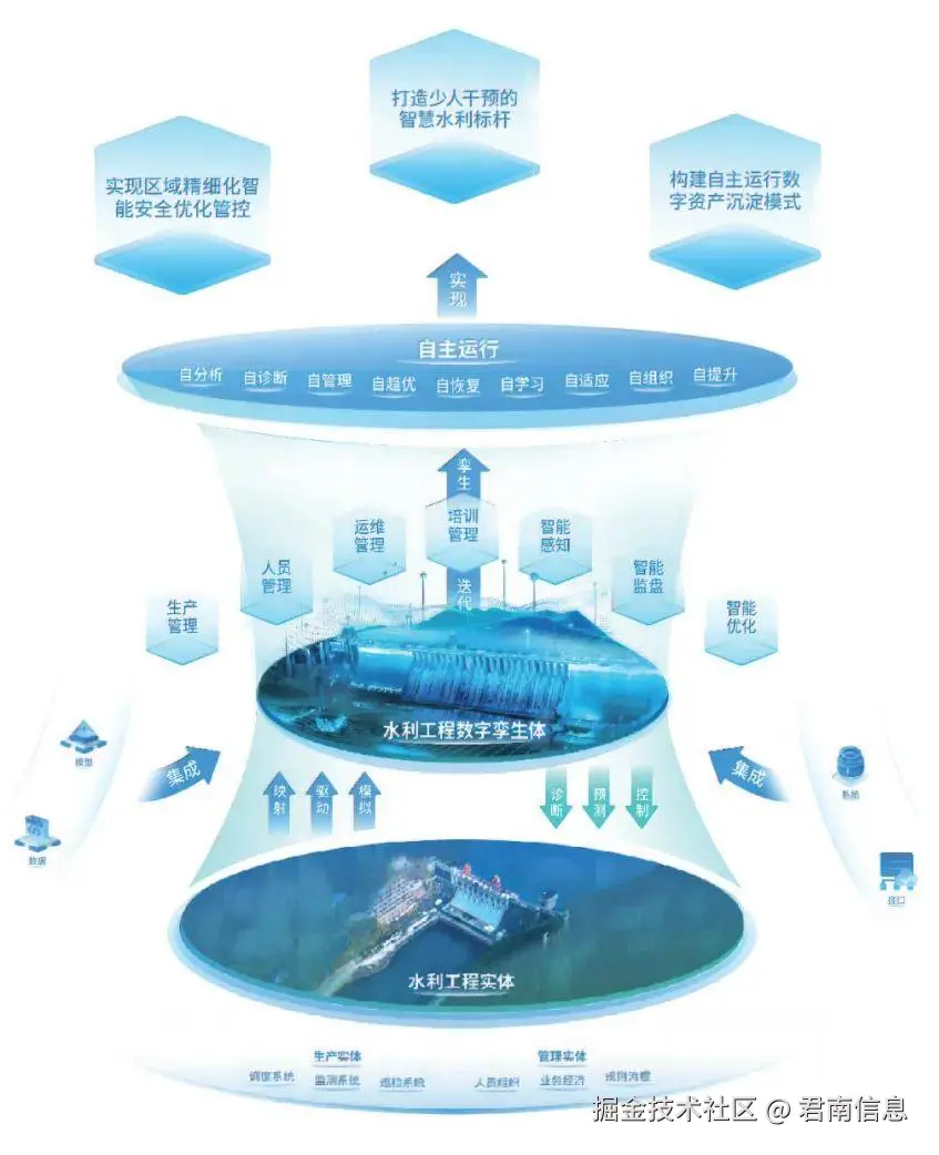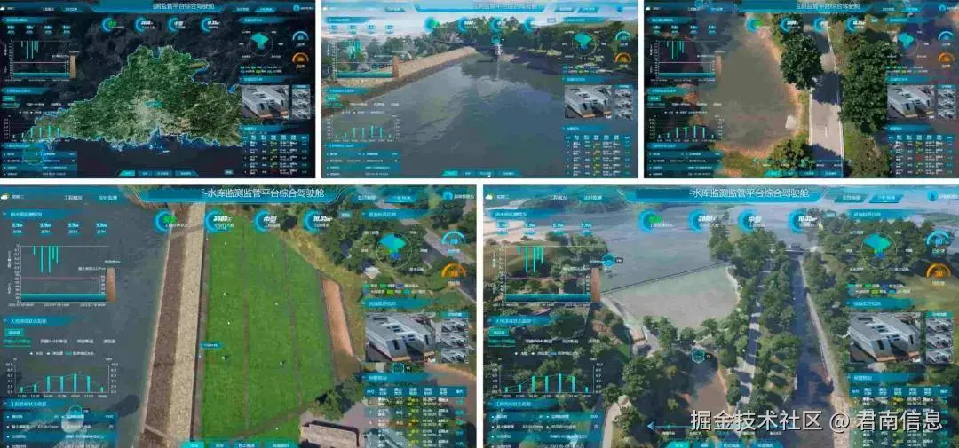 君南信息依托在智慧城市、应急行业等领域的丰富经验,深入研究水利行业特点与需求,成功研发出基于数字孪生的水利应急解决方案,旨在提升水利工程的智能化水平,增强水利应急管理的预见性、精准性与高效性。