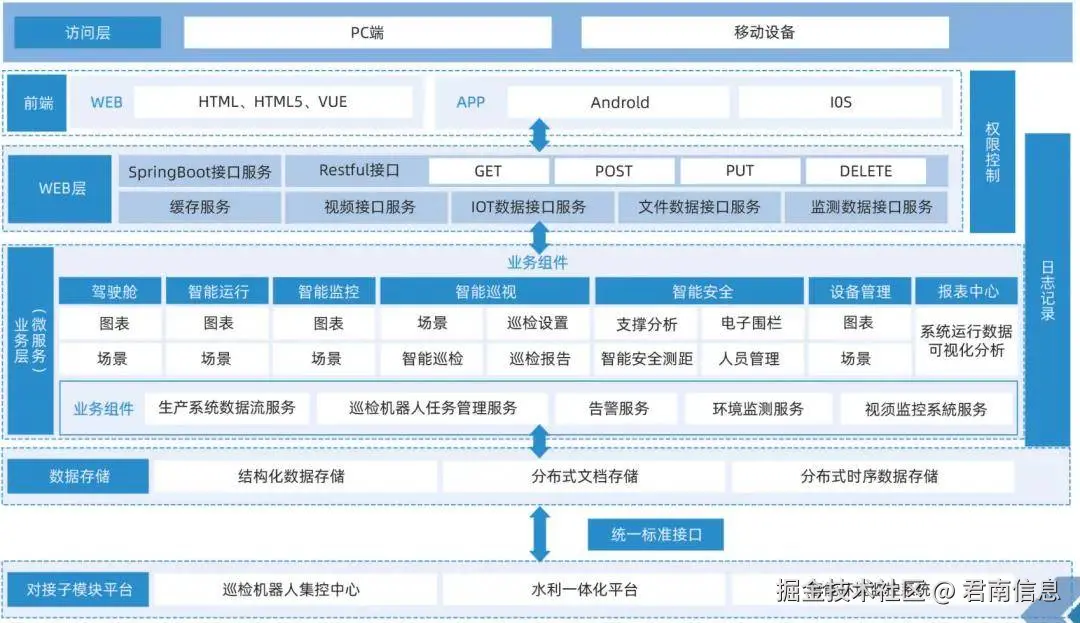 该方案采用微服务架构,遵循模块化、通用化、灵活化的设计原则,确保系统的高效率、前沿性、灵活化与强拓展性。 平台集成了数据引擎、知识引擎、可视化模型等核心组件,支持跨行业数据共享与智能识别模型的应用,为水利应急管理提供强大的技术支持。