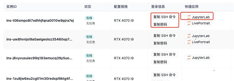 1、实例创建成功后,通过 ssh 或 jupyter 连接实例