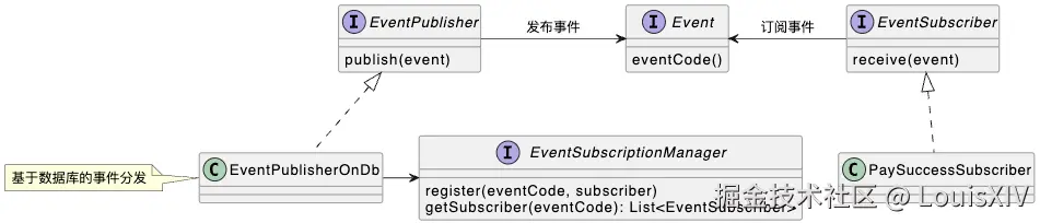 这一套机制可以很好地把事件的发布和订阅解耦,并且预留了足够的扩展性,事件分发默认基于数据库来实现,当然将来也可以增加其他的实现机制(例如基于MQ来实现)