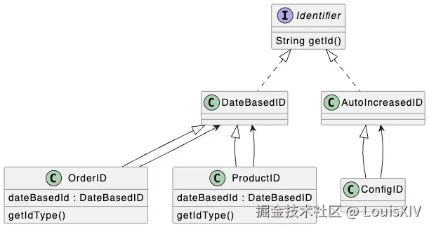 我这里用的是装饰器模式的变体,OrderID、ProductID、ConfigID都是装饰器,通过包装DateBasedID或AutoIncreasedID就可以轻松扩展其能力,并且代码的层次结构得以清晰地展现。