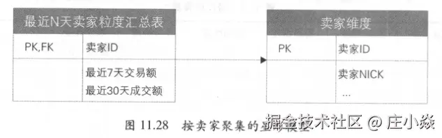 聚集是指针对原始明细粒度的数据进行汇总。假定已有的交易订单明细模型如图11.26所示,可以看出事实和商品、卖家、买家等维度关联。