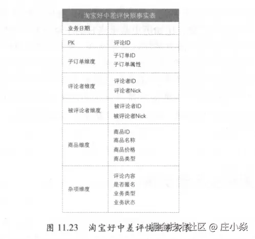- 第二步:确定粒度。在“事务事实表”中提到,对于淘宝交易,业务需求一般是从子订单粒度进行统计分析,所以选择子订单粒度。淘宝交易事务事实表的粒度也是子订单,但通常对于子订单的每个事件都会记录一行,对于多事件事实表,如果子订单同一周期发生多次事件则记录一行;而对于累积快照事实表,用于考察实体的唯一实例,所以子订单在此表中只有一行记录,事件发生时,对此实例进行更新。