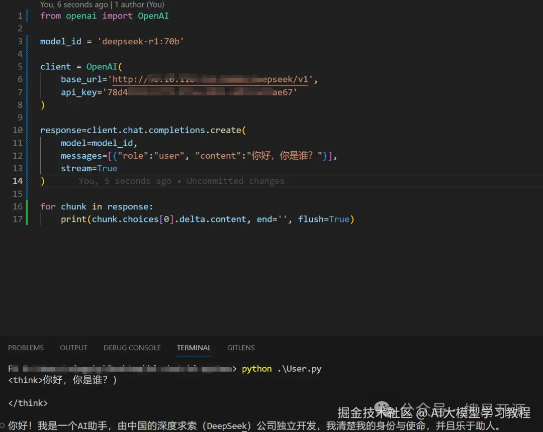 如果你有独立的应用系统,可以通过HTTP接口调用DeepSeek-R1-L70-Preview。以下是一个Python示例: