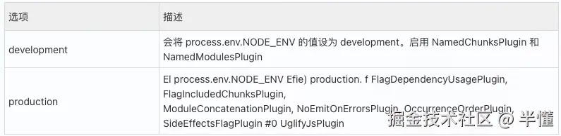 - 而如果是 development mode 的话,则会开启 debug 工具,运行时打印详细的错误信息,以及更加快速的增量编译构建选项