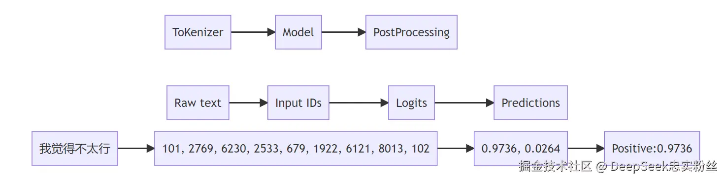 - 将数据预处理、模型调用、结果后处理三部分组装成的流水线,如下流程图