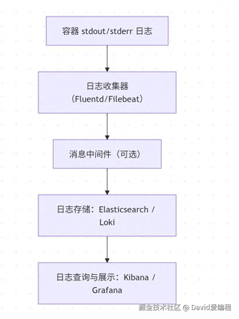 本文回顾了容器日志机制、常用日志采集方案(EFK/Loki)、实际部署方法、Kubernetes 环境下的集中日志方案,并通过 Mermaid 图梳理整体流程。