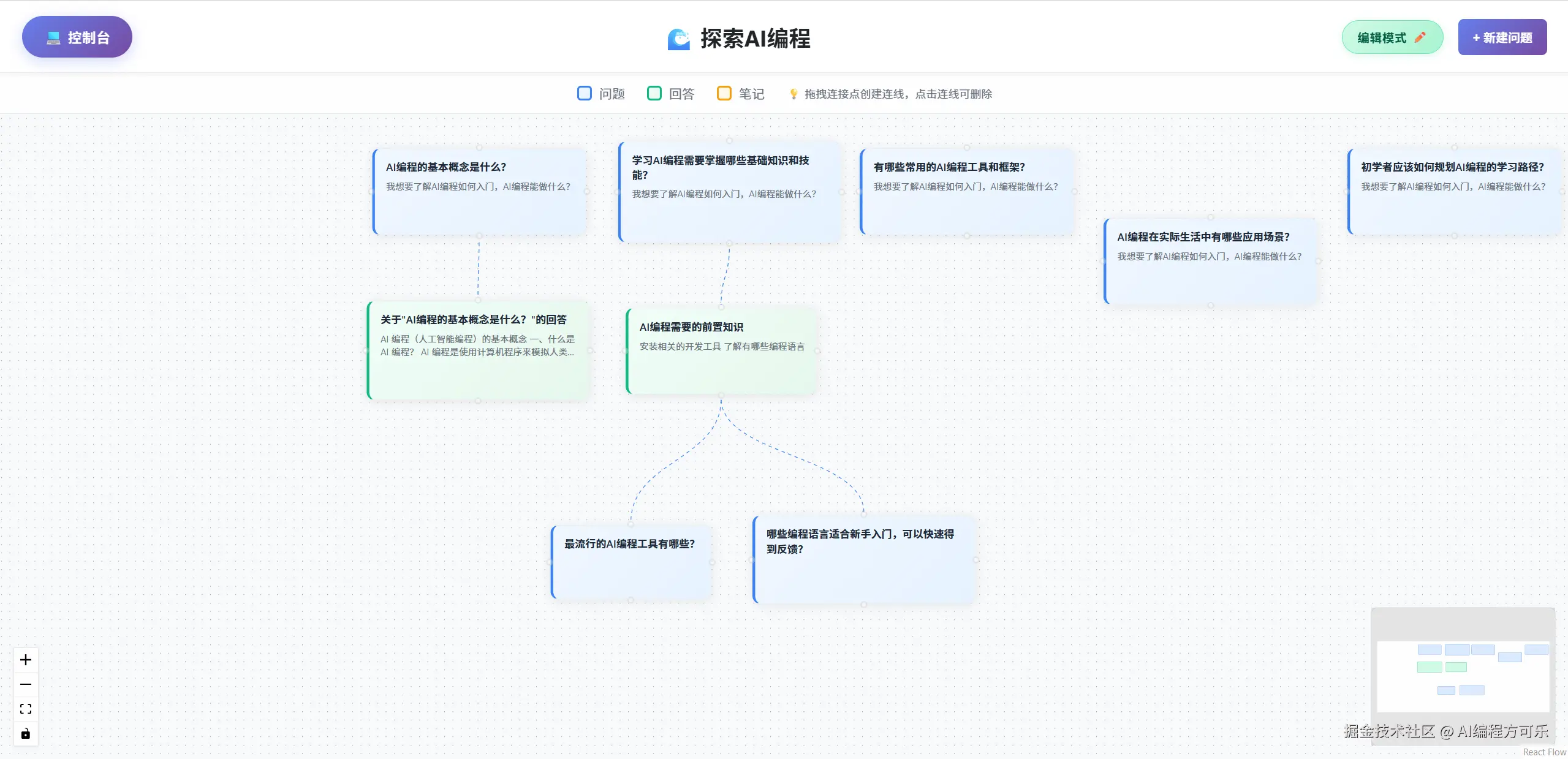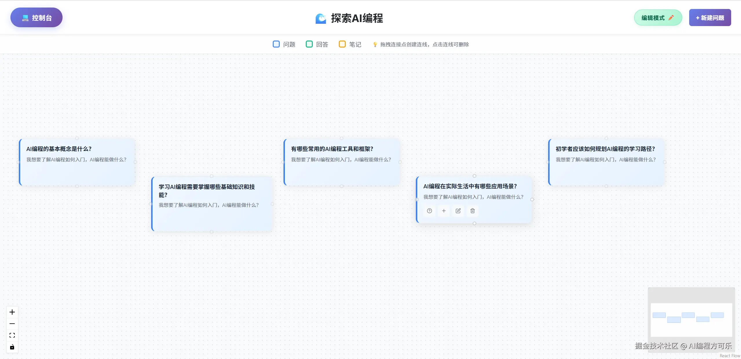可以看到,基于原本的第一个问题【AI编程如何入门】,我们在AI的帮助下,细化了这个问题,并且分开进行了回答和深入探索。