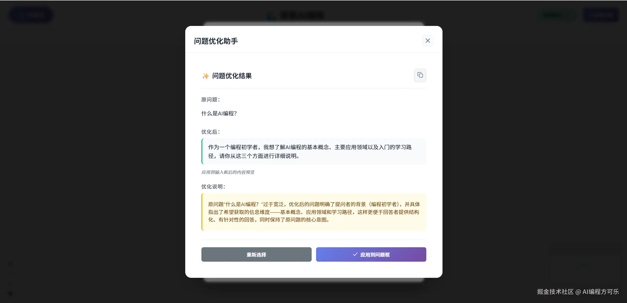 点击【应用到问题框】,就可以看到,直接把优化后的问题覆盖过去了。