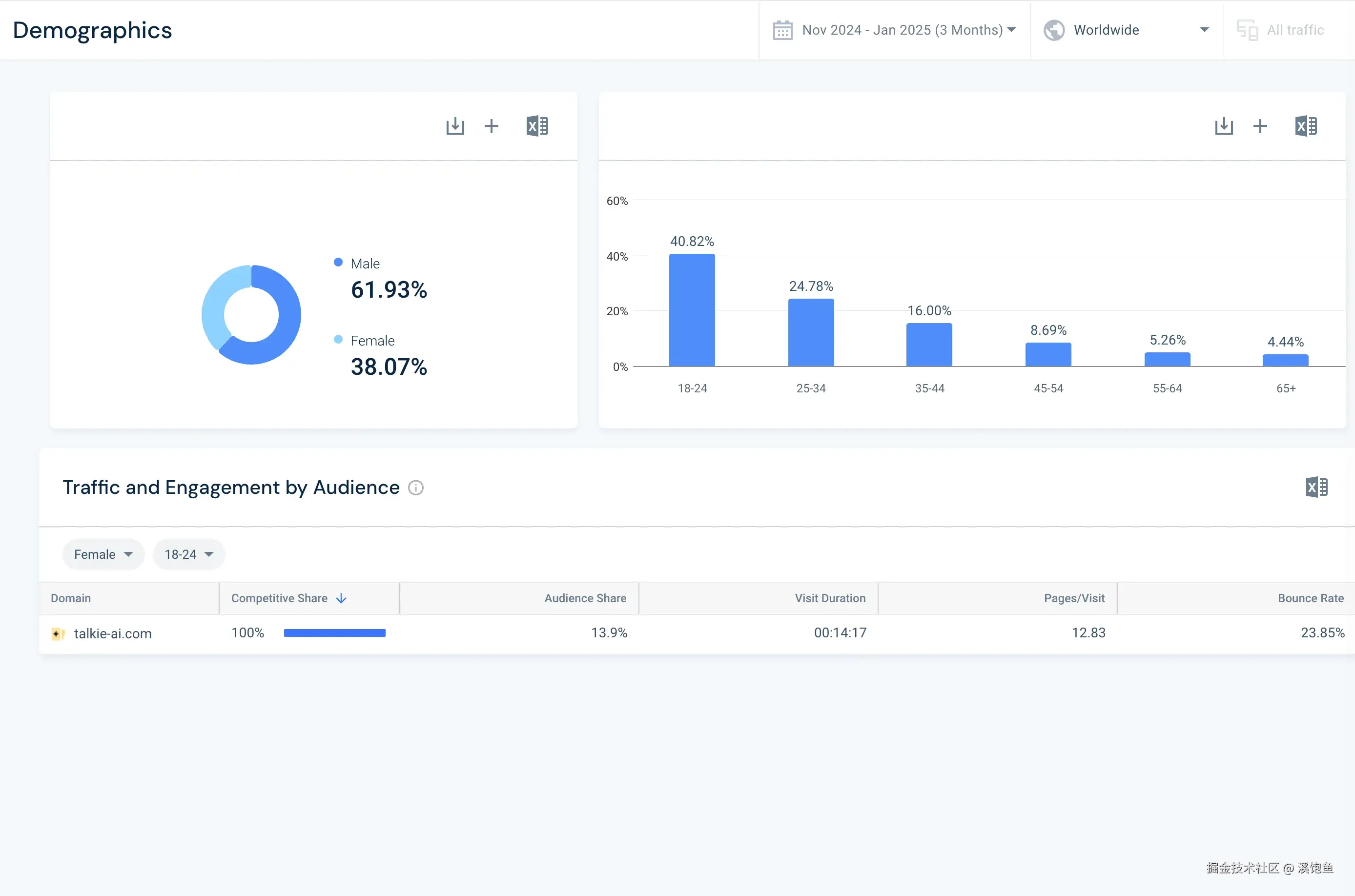 通过SimilarWeb的"Demographics"部分,我们可以了解talkie用户的基本特征: