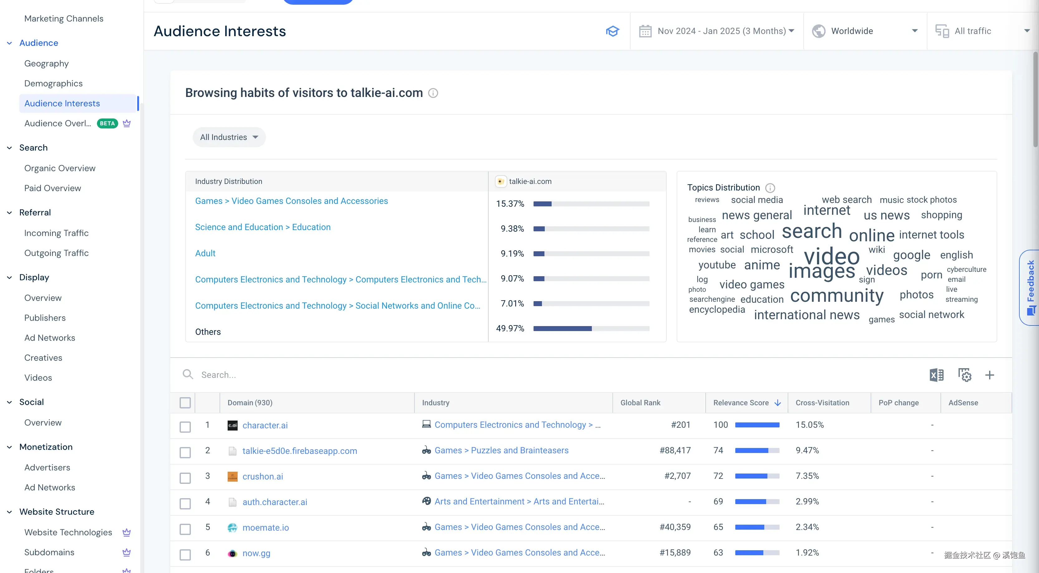 通过SimilarWeb的"Audience Interests"部分,我们可以深入了解talkie-ai.com访问者的浏览习惯和兴趣分布: