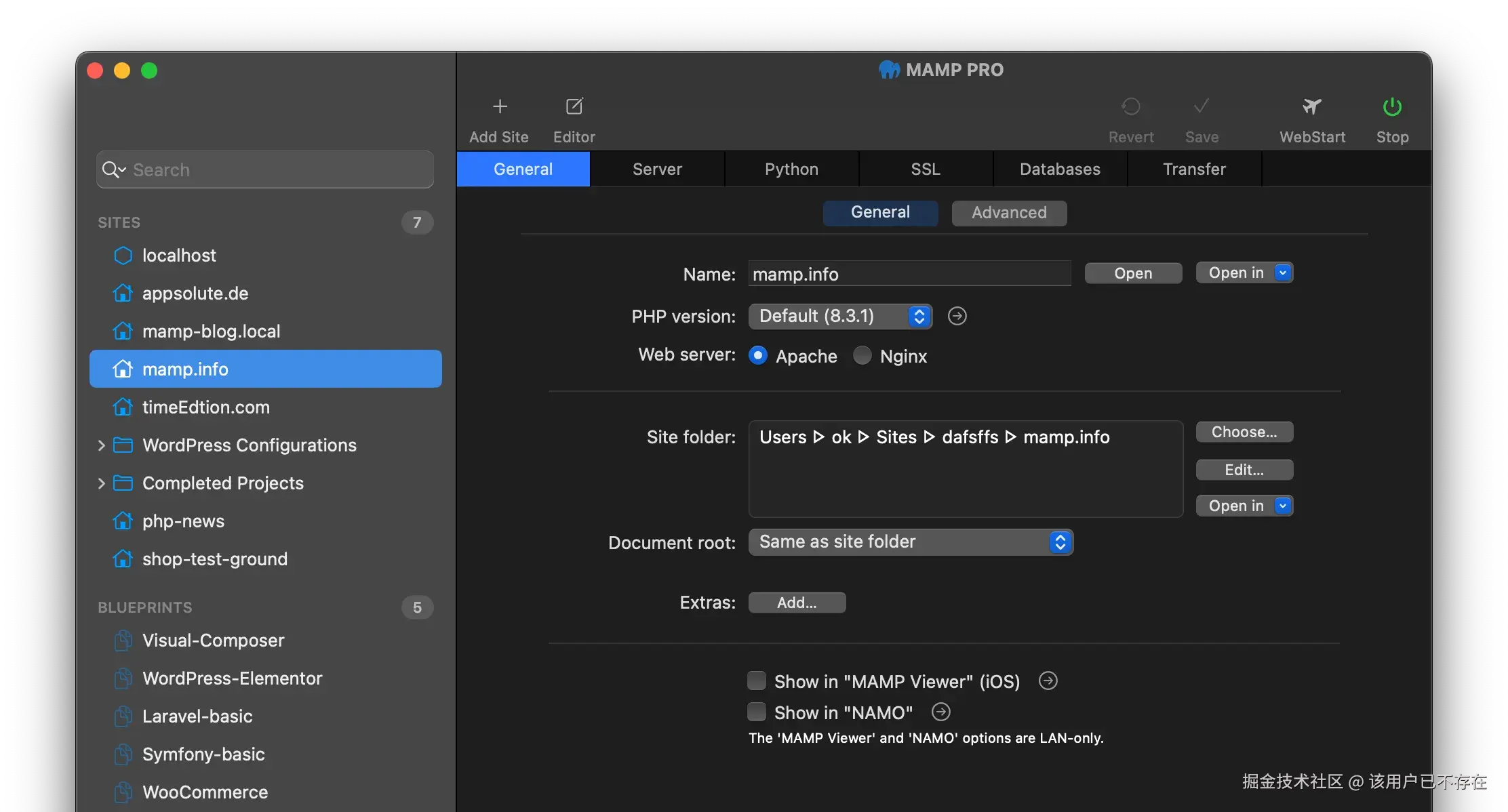 - 评价: MAMP 非常可靠,是许多人接触本地开发的第一站。但时至今日,它的技术栈更新相对较慢,界面和功能设计略显陈旧,面对多项目、多版本共存的现代化需求时,灵活性和扩展性已稍显不足。