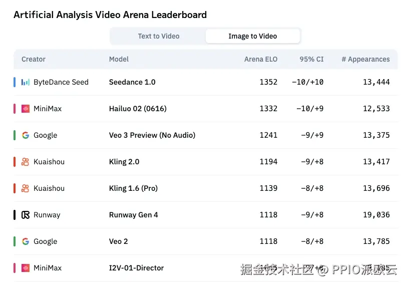 在 Artificial Analysis 最新的图生视频排行榜上,Hailuo 02 位列第二。