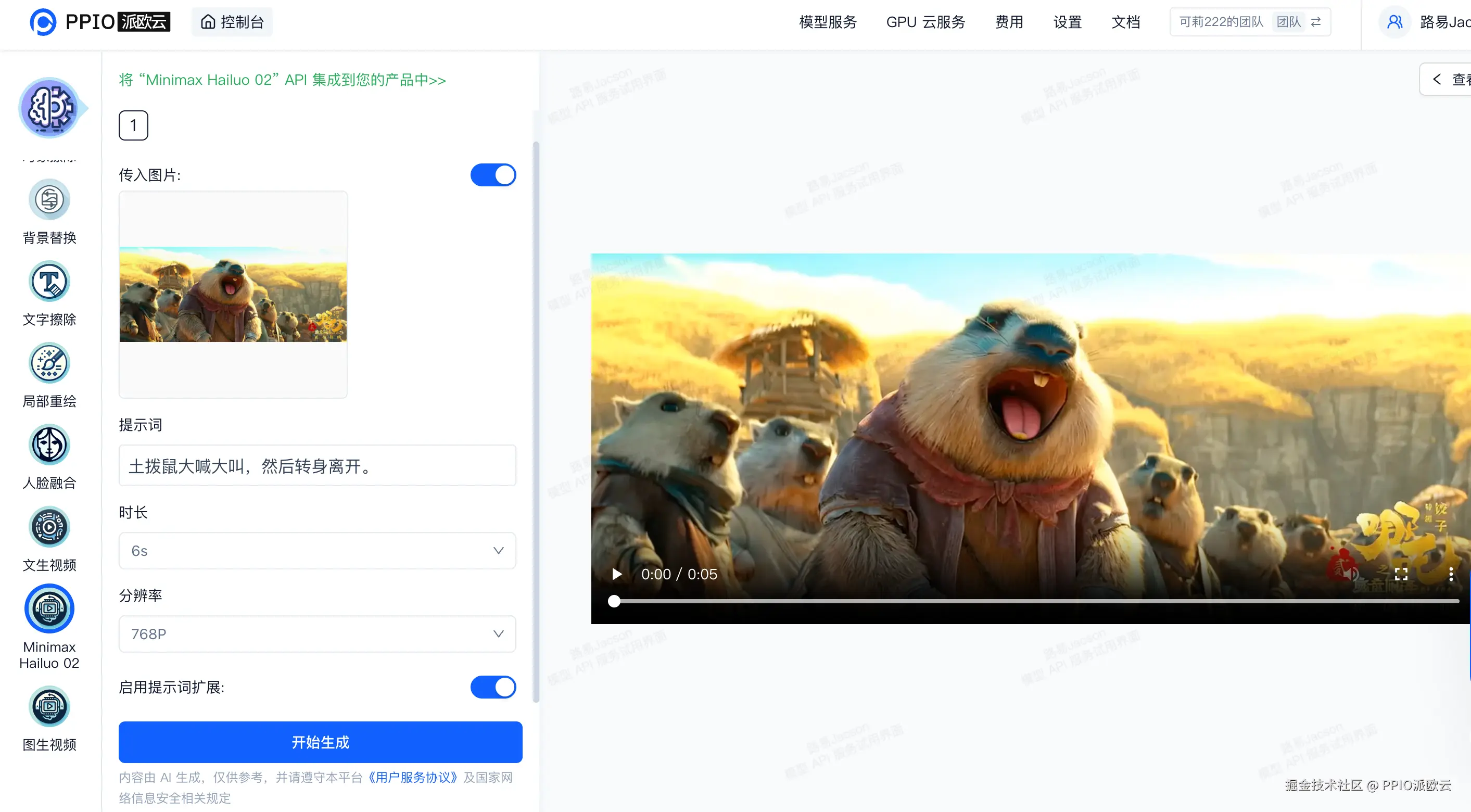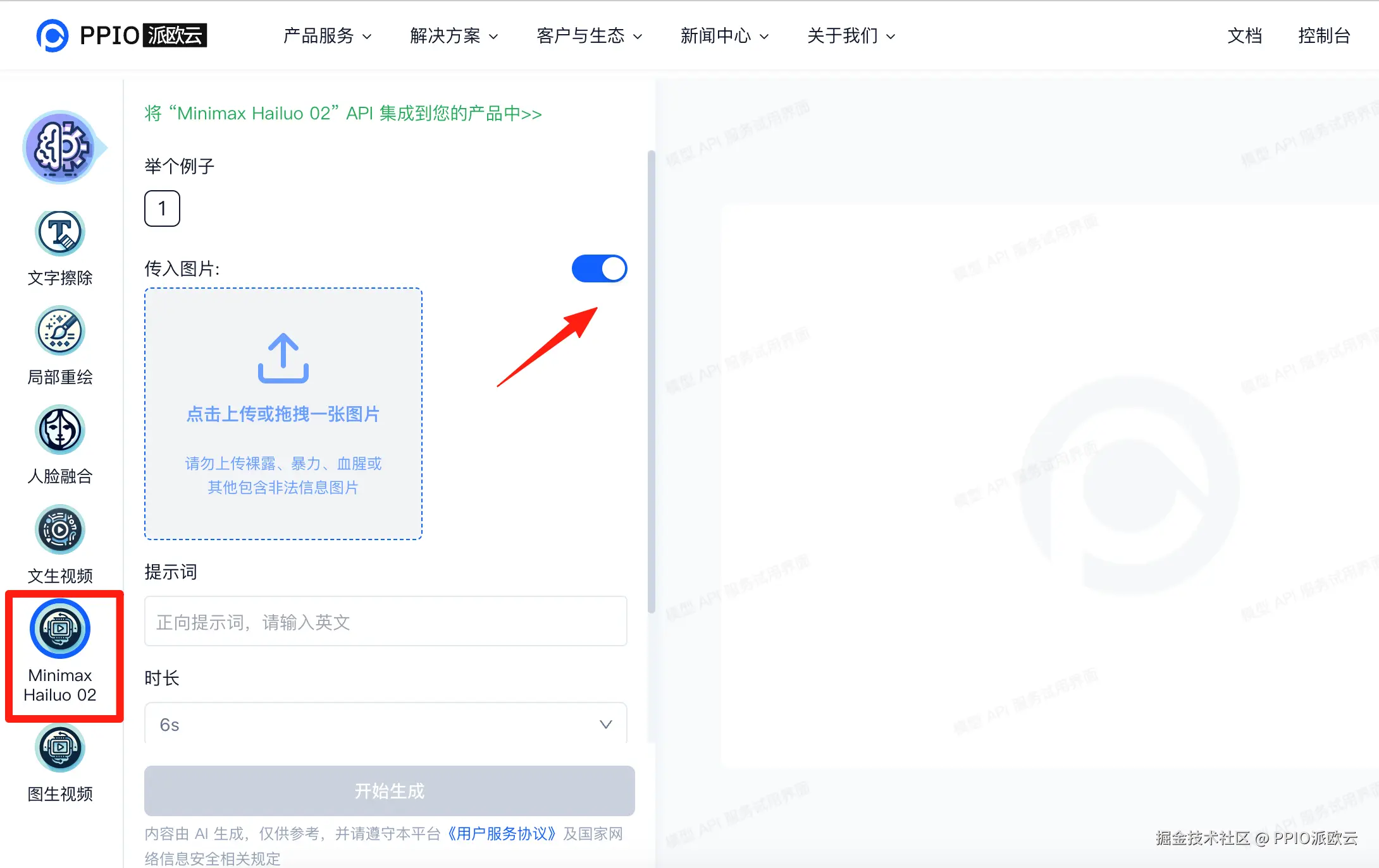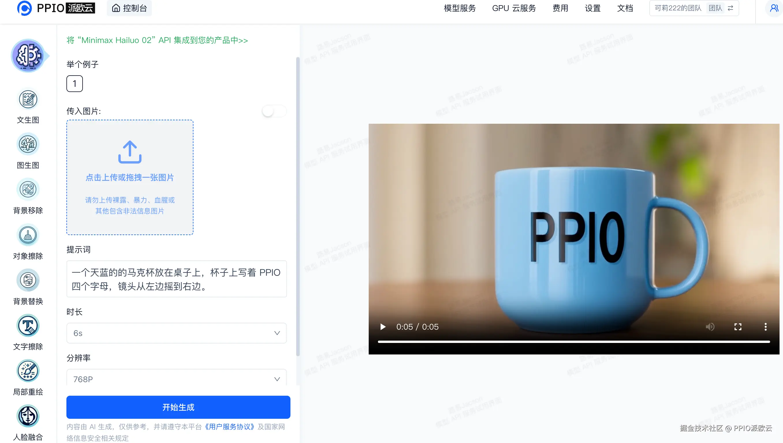 - 在 PPIO 在线体验 MiniMax-Hailuo-02