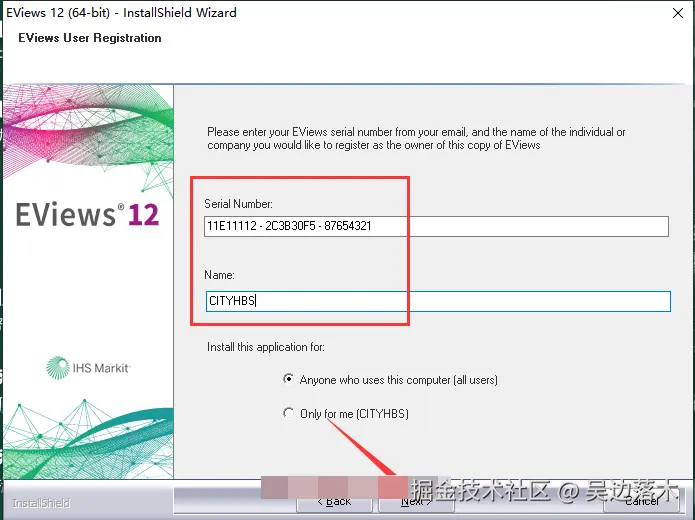 输入Serial Number:【11E11112 – 2C3B30F5 – 87654321】,输入Name【CITYHBS】,点击Next