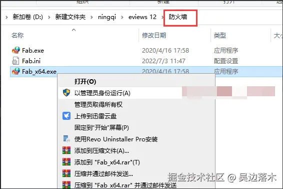 打开防火墙文件夹,鼠标右键以管理员身份运行Fab_x64.exe
