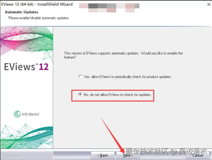 自动更新 请启用/禁用自动更新,点击No的选项,然后Next