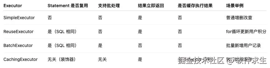 但回头想想,MyBatis 这几个 Executor 并不是要你死记硬背它们有几个,而是考你 理解能力 + 实践经验:
