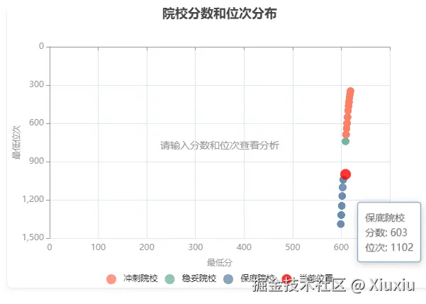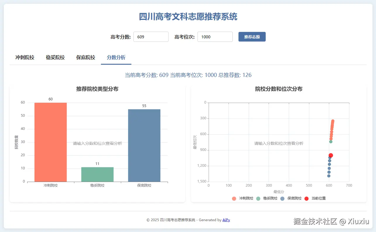 AiPy直接给出了一个分析界面,非常清晰地能够看出你的排列位次,院校分布等数据。直方图能够直观地看到自己的定位。非常清晰有效