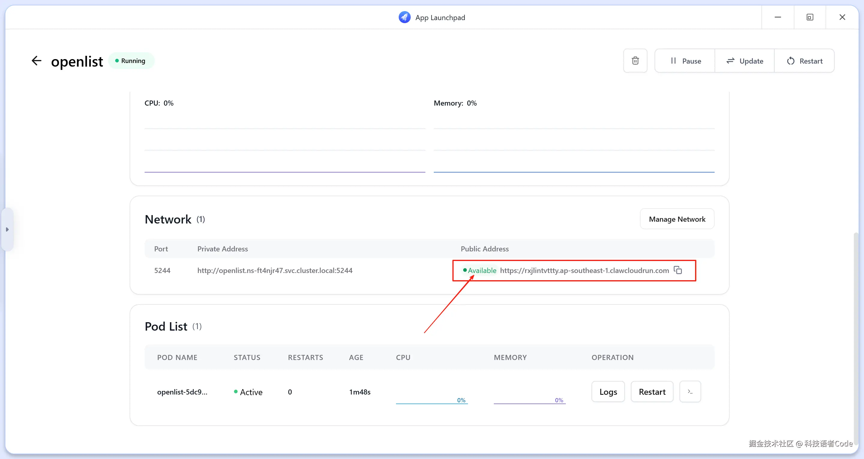 - 等待3-10分钟直至Public Address显示"Available"状态