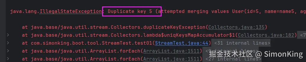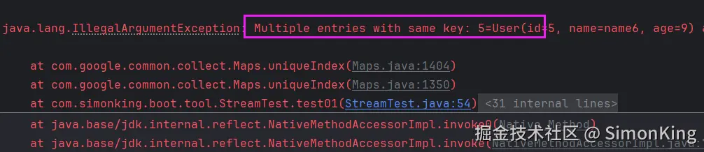 此时,流式处理和Guava的写法,全部崩溃,大致的报错都是因为key重复导致的。
