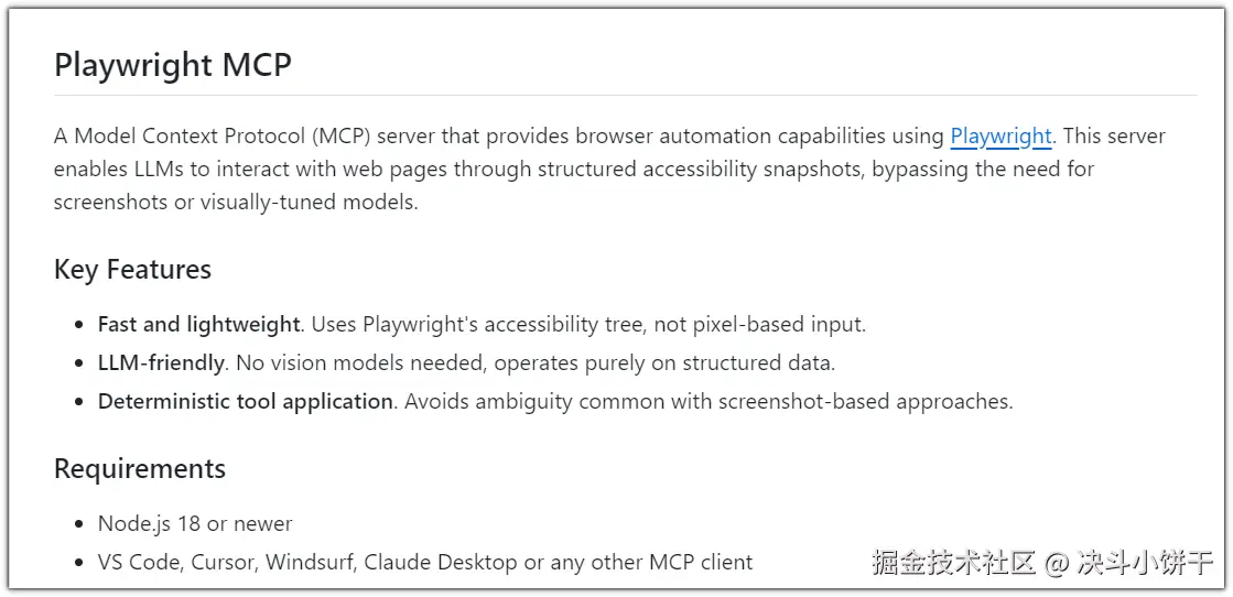 - 使用场景:自动化网页操作,如导航网站、填写表单、提取页面中的结构化数据,以及由LLM驱动的自动化测试或作为通用的网页代理执行复杂交互。