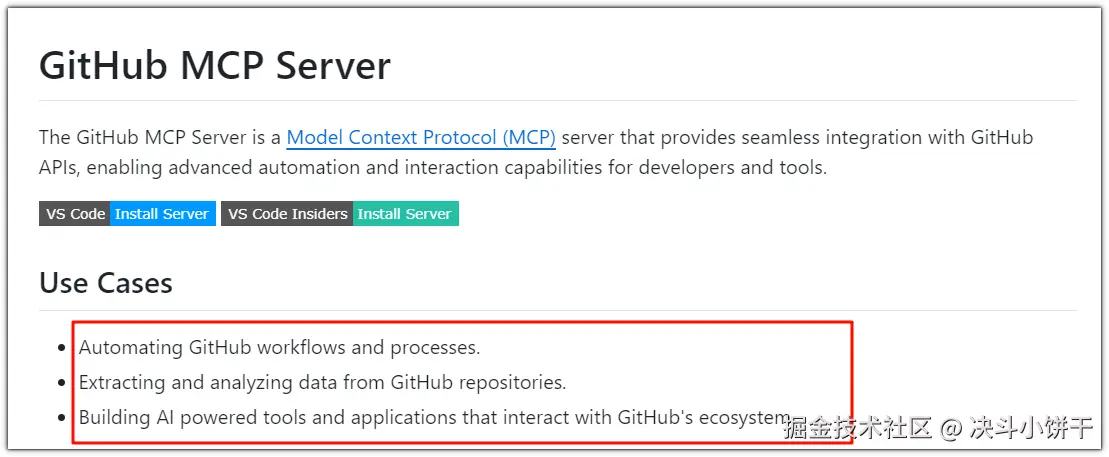 - 使用场景:适合需要自动化GitHub平台操作的场景。