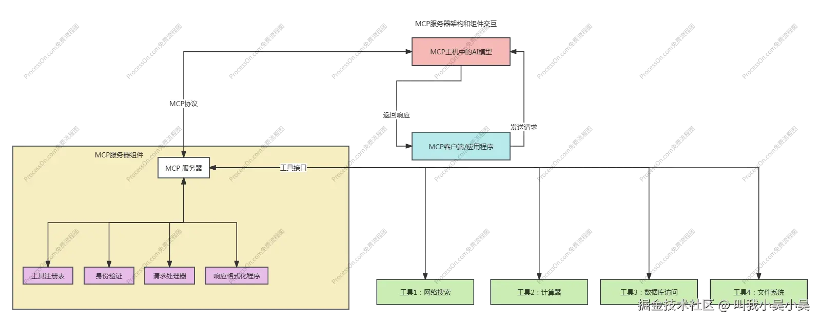 - 该模型使用标准化协议与MCP服务器进行通信。