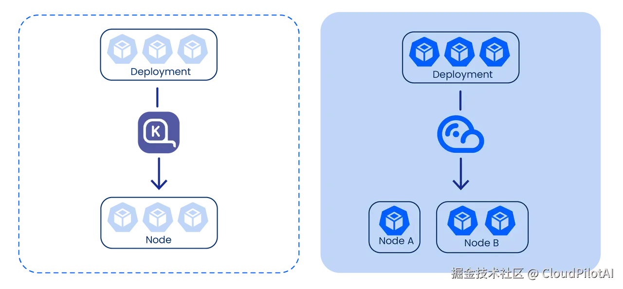 倾向于将大量工作负载集中调度到少量大型节点上,以降低成本。但当这些节点被合并或回收时,可能会造成大范围服务中断。