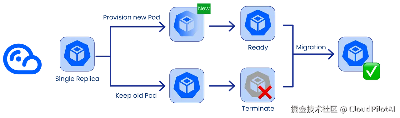 CloudPilot AI 会延迟节点终止操作,直至新节点准备就绪且 Pod 确认运行后才确认交接。