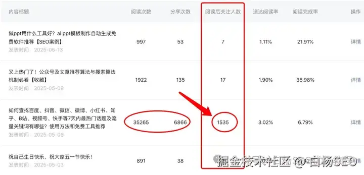 所以白杨SEO建议创作者朋友们:如果你想在公众号这里靠内容获取流量,一定要把搜索逻辑(SEO关键词布局)+推荐逻辑(用户兴趣爱好)相结合起来搞流量。