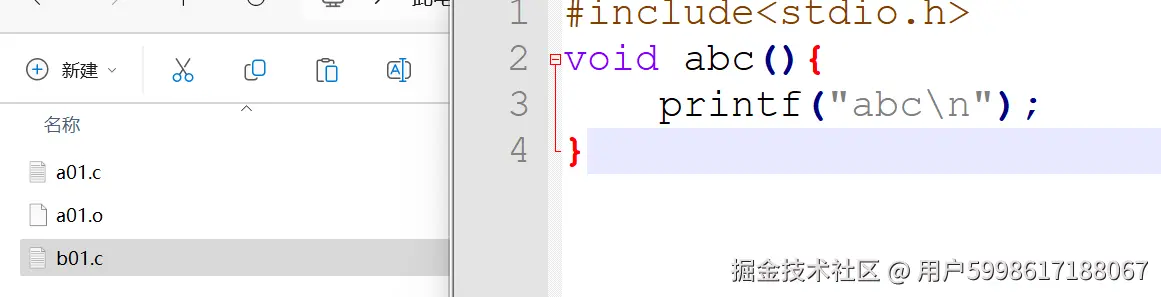 我们可以看到计算机不知道abc该咋填所以就对abc未定义进行了报错,这说明我们的原材料 .c文件少了,那我们进行一个补充b01.c文件