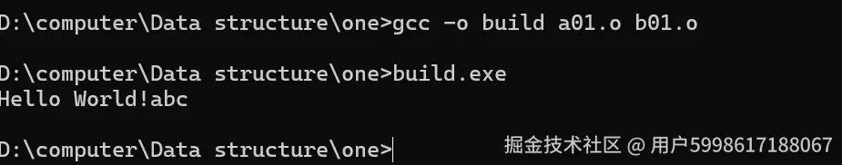 通过对两个.o文件的运行,可以看到我们的“Hello World!和abc都实现了