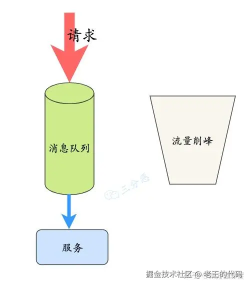 我们可以把请求扔到队列里面,只放出我们服务能处理的流量,这样就能抗住短时间的大流量了。