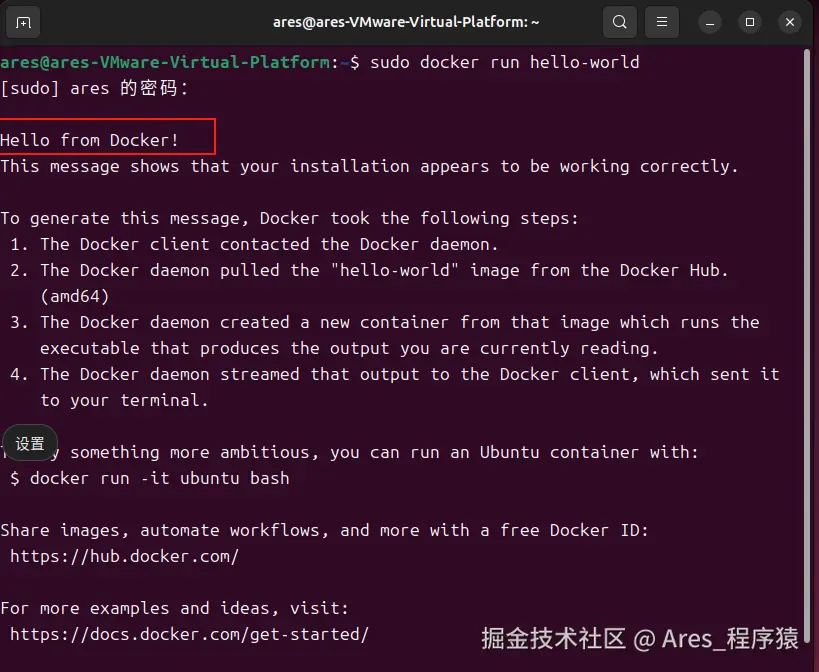 3.2.4、通过运行hello-word镜像来验证安装是否成功